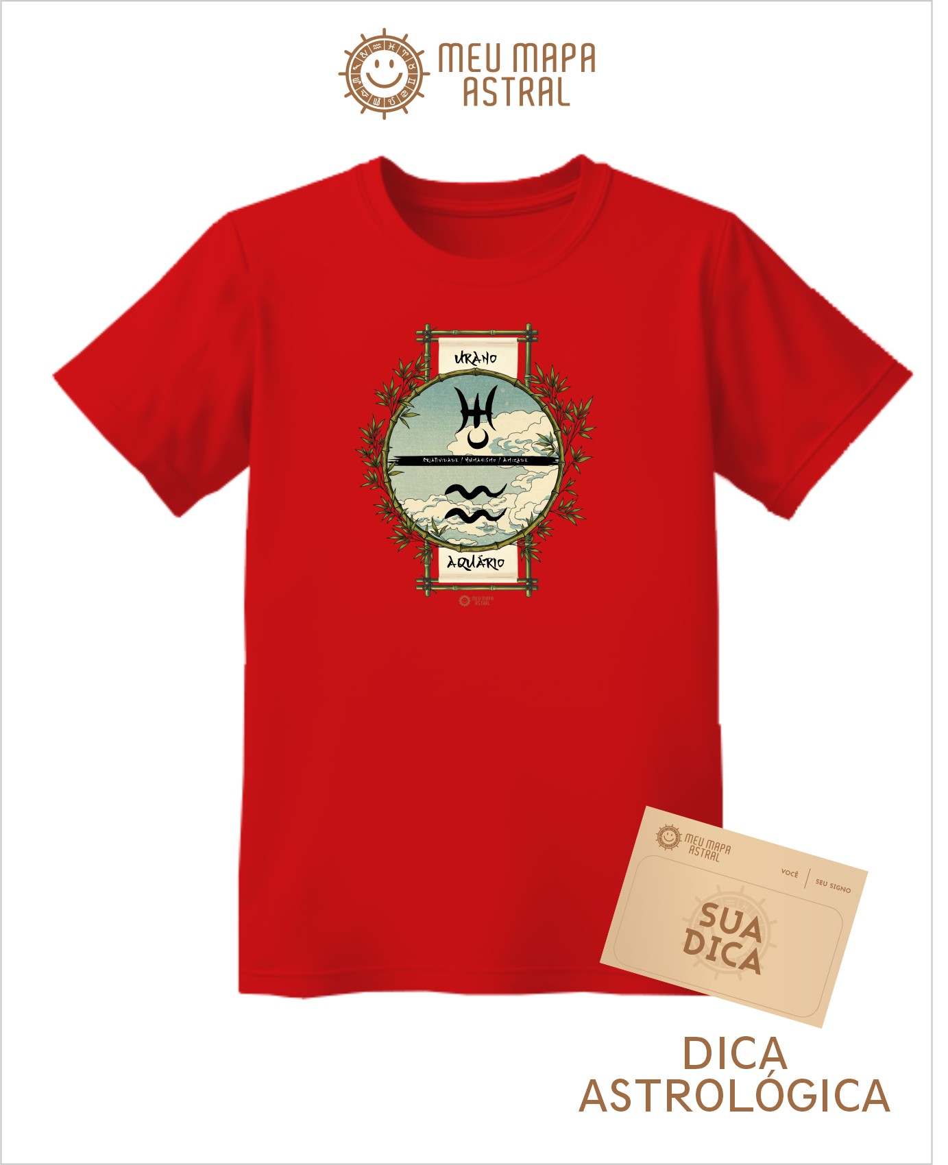 Camiseta Aquário/Urano Ilustrada — para quem quer expressar sua essência única e inovadora! Produzida 100% em algodão, essa camiseta une conforto e qualidade com uma estampa astrológica exclusiva que destaca seu signo natal Aquário e o poder do seu astro regente, Urano.