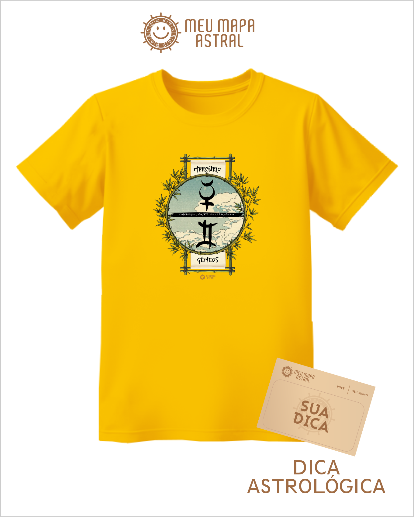 Camiseta Gêmeos/Mercúrio Ilustrada — para quem tem o dom da fala e a mente mais rápida que wi-fi!