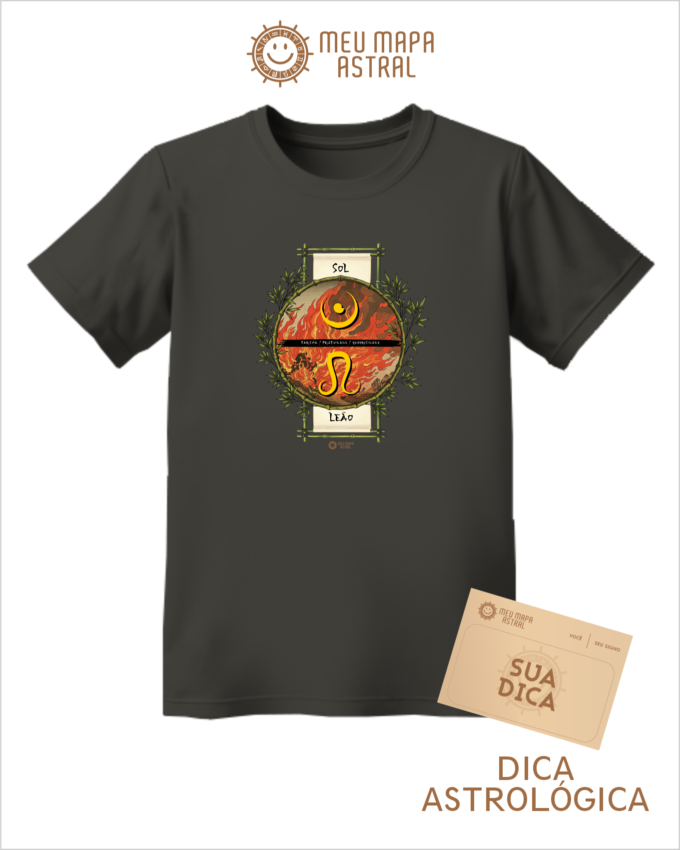 Feita 100% de algodão, super confortável, ela traz seu signo Leão, seu astro regente Sol e suas principais características em uma estampa astrológica inspirada no mestre do ukiyo-e, Katsushika Hokusai.