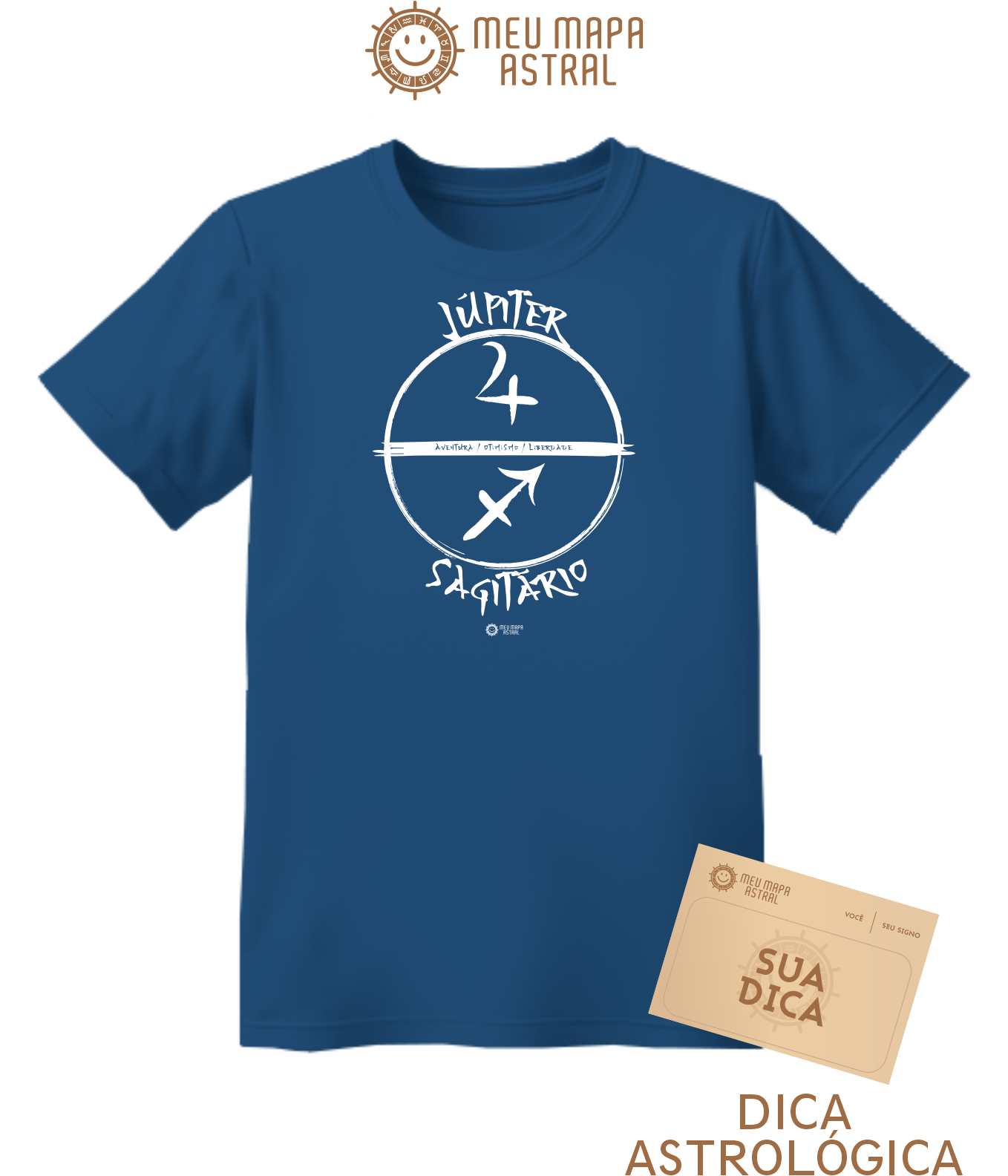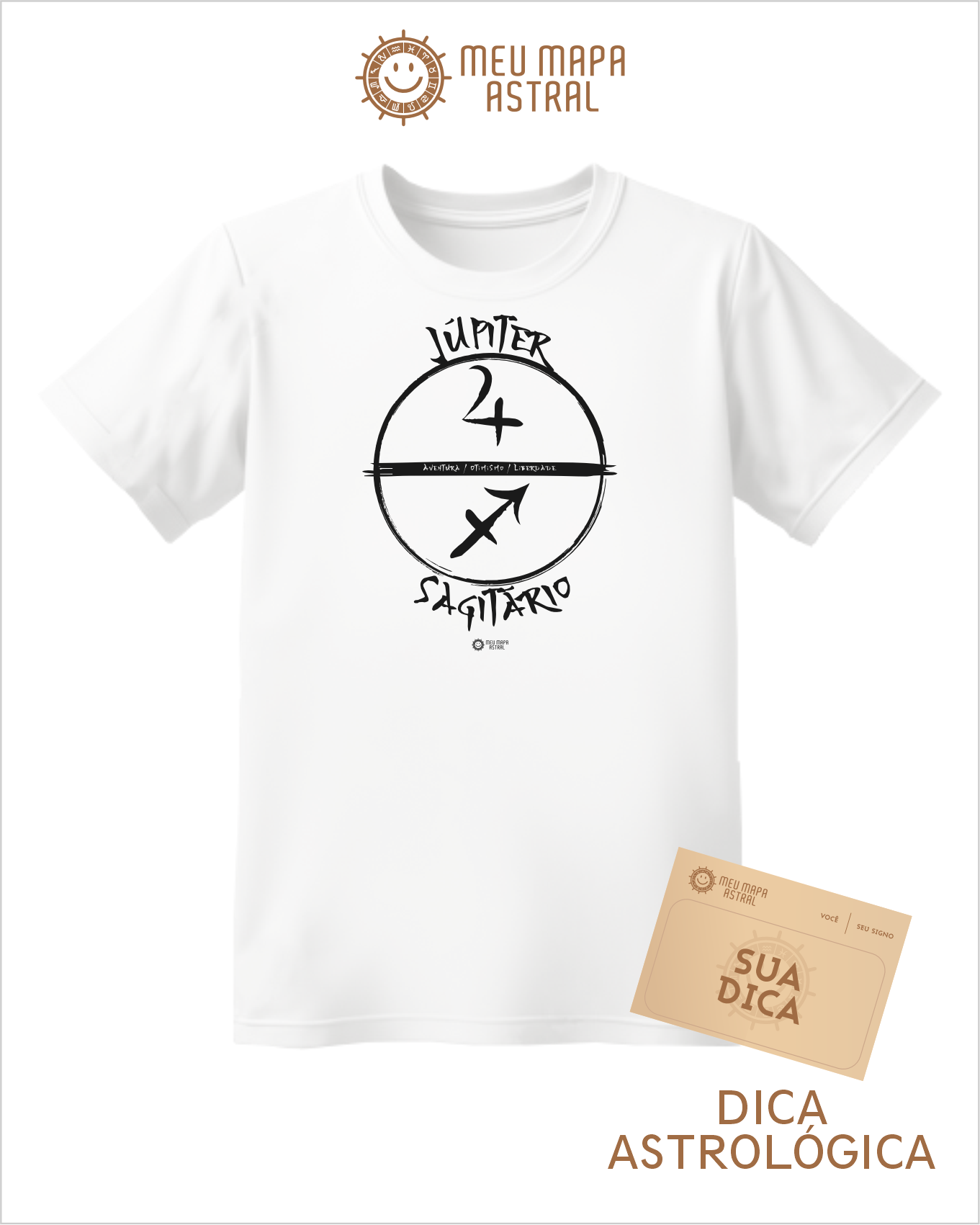 Camiseta Sagitário/Júpiter Gráfica — para quem não tem medo de atirar flechas para o céu e mirar nas estrelas! Feita 100% de algodão, super confortável, em diversas cores, ela traz os símbolos do seu signo Sagitário, seu astro regente Júpiter e suas principais características, em uma estampa com pegada oriental, cheia de estilo . Mostre seu lado aventureiro, otimista e um pouquinho filosófico — afinal, ser sagitariano é isso mesmo! Vista-se com a energia do Universo!