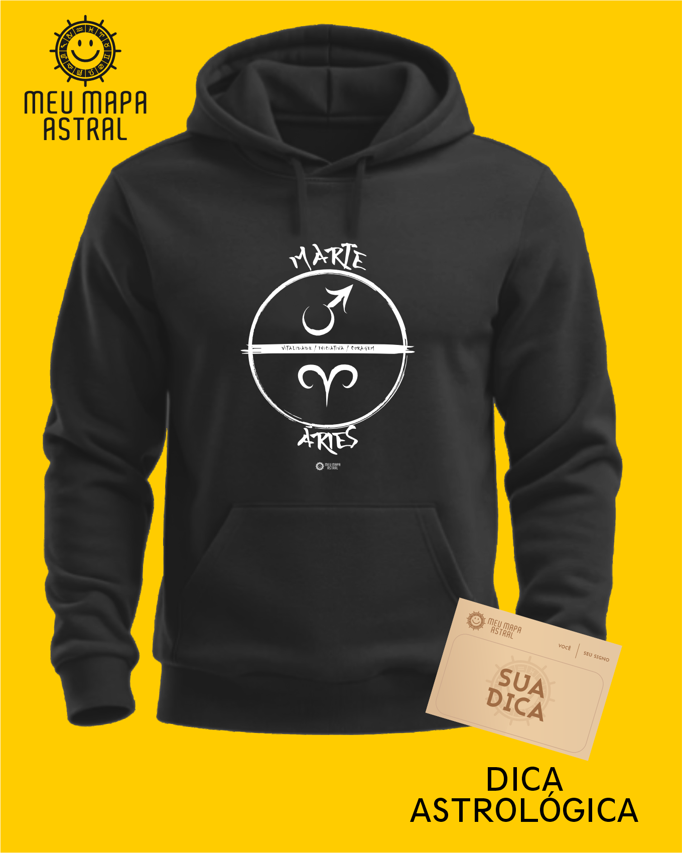Moletom Áries/Marte Gráfica — Moletom aconchegante, com aquele toque fofinho e flanelado por dentro, para você que é fogo no parquinho! Com estampa astrológica do signo Áries, seu astro regente Marte e suas características marcantes, tudo com um toque oriental pra dar aquele charme extra.