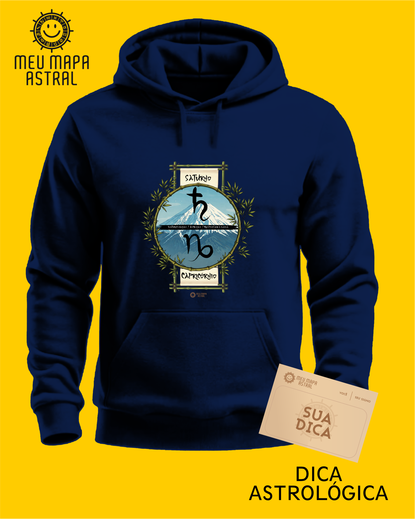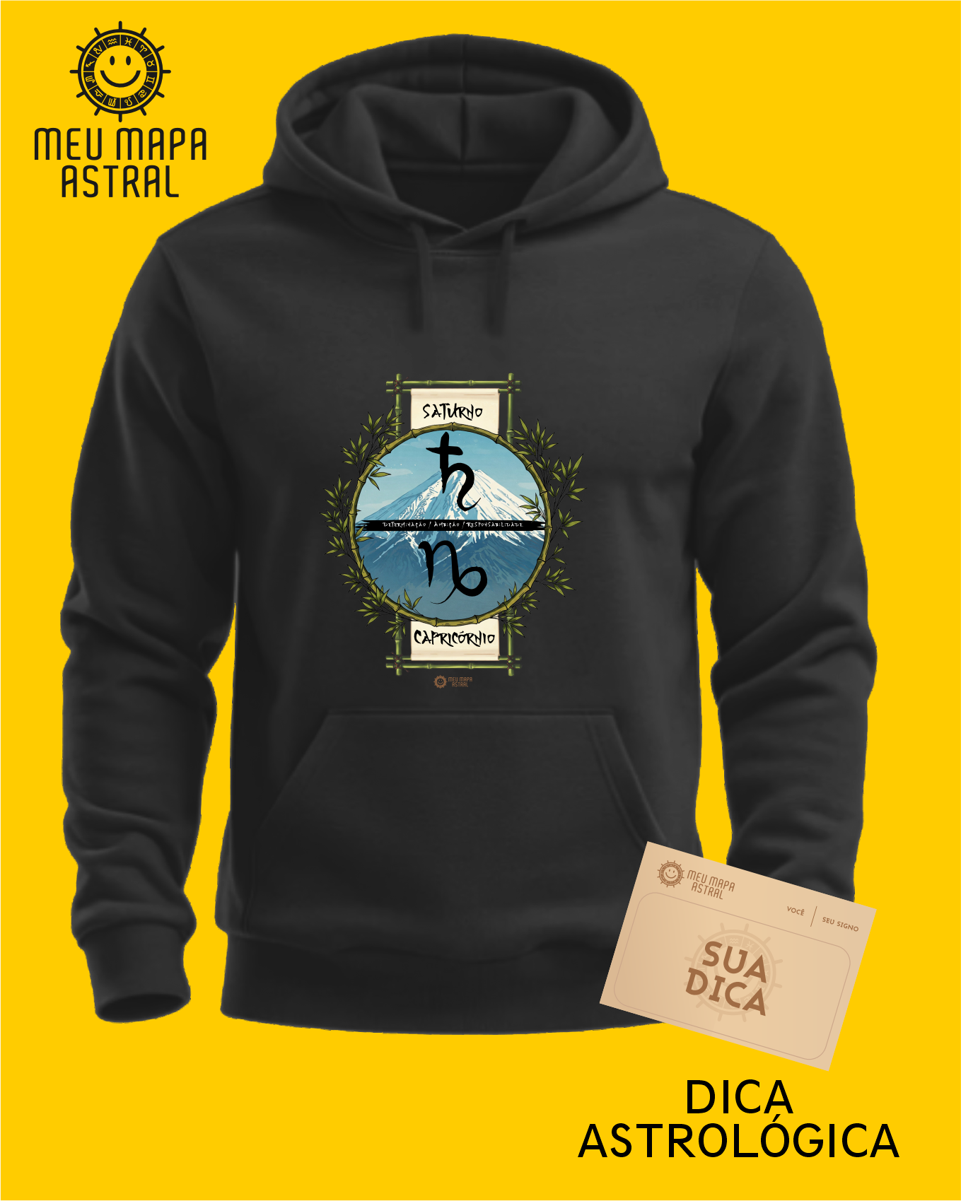 Aconchegante, com aquele toque fofinho e flanelado por dentro, super confortável, esse moletom une conforto e estilo com uma estampa astrológica do signo Capricórnio, seu astro regente Saturno e suas principais características, numa estampa astrológica inspirada no mestre do ukiyo-e, Katsushika Hokusai, cheia de estilo.