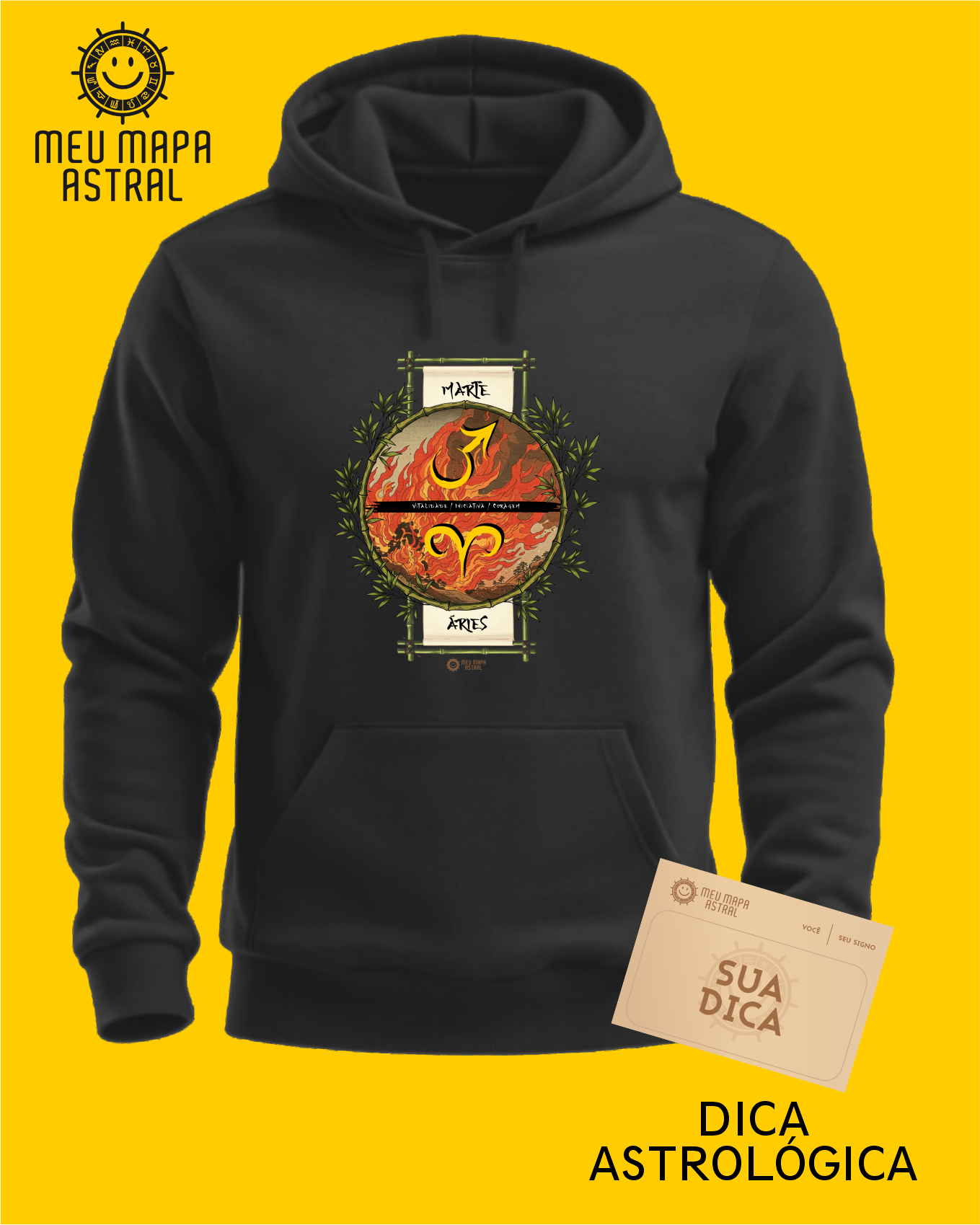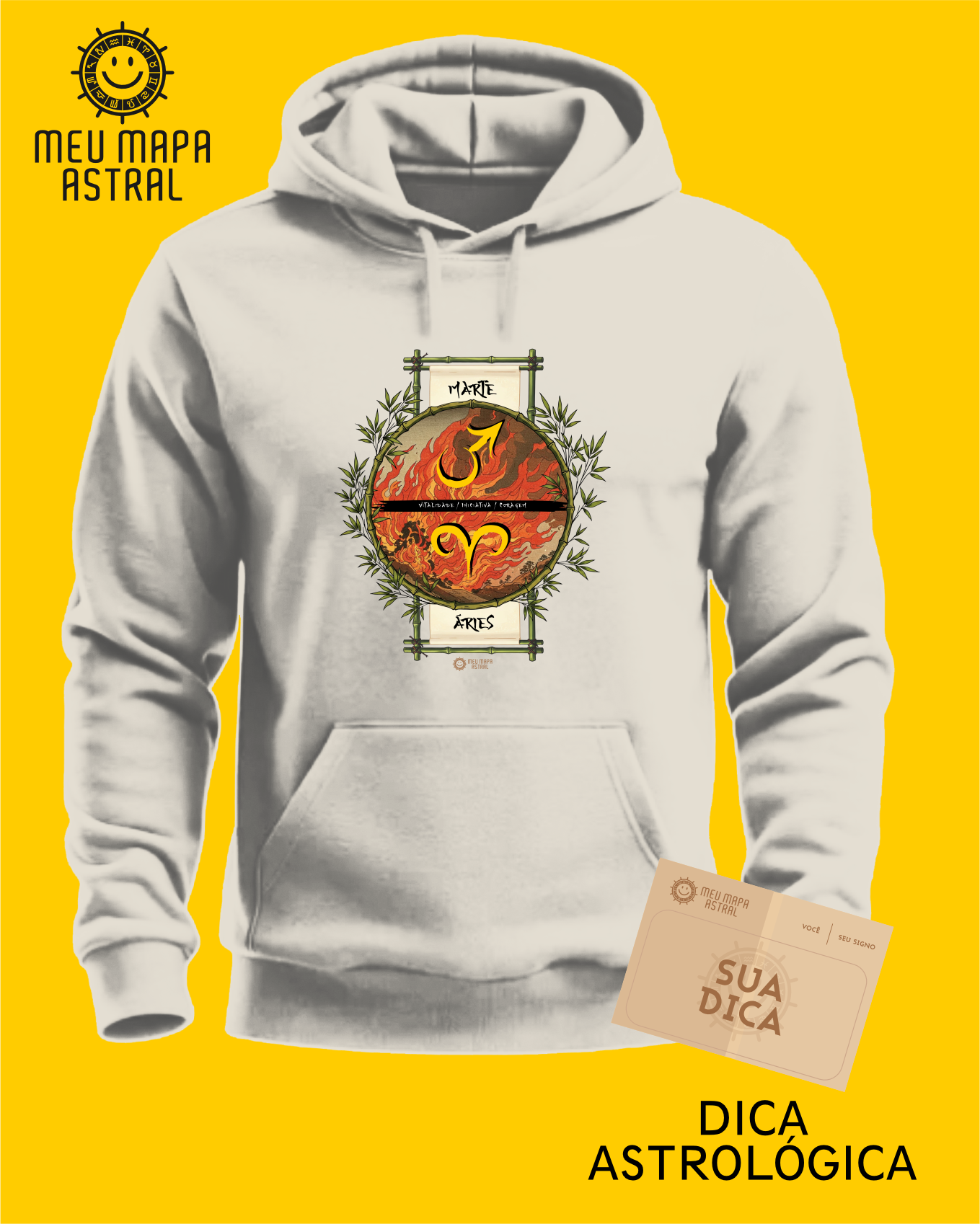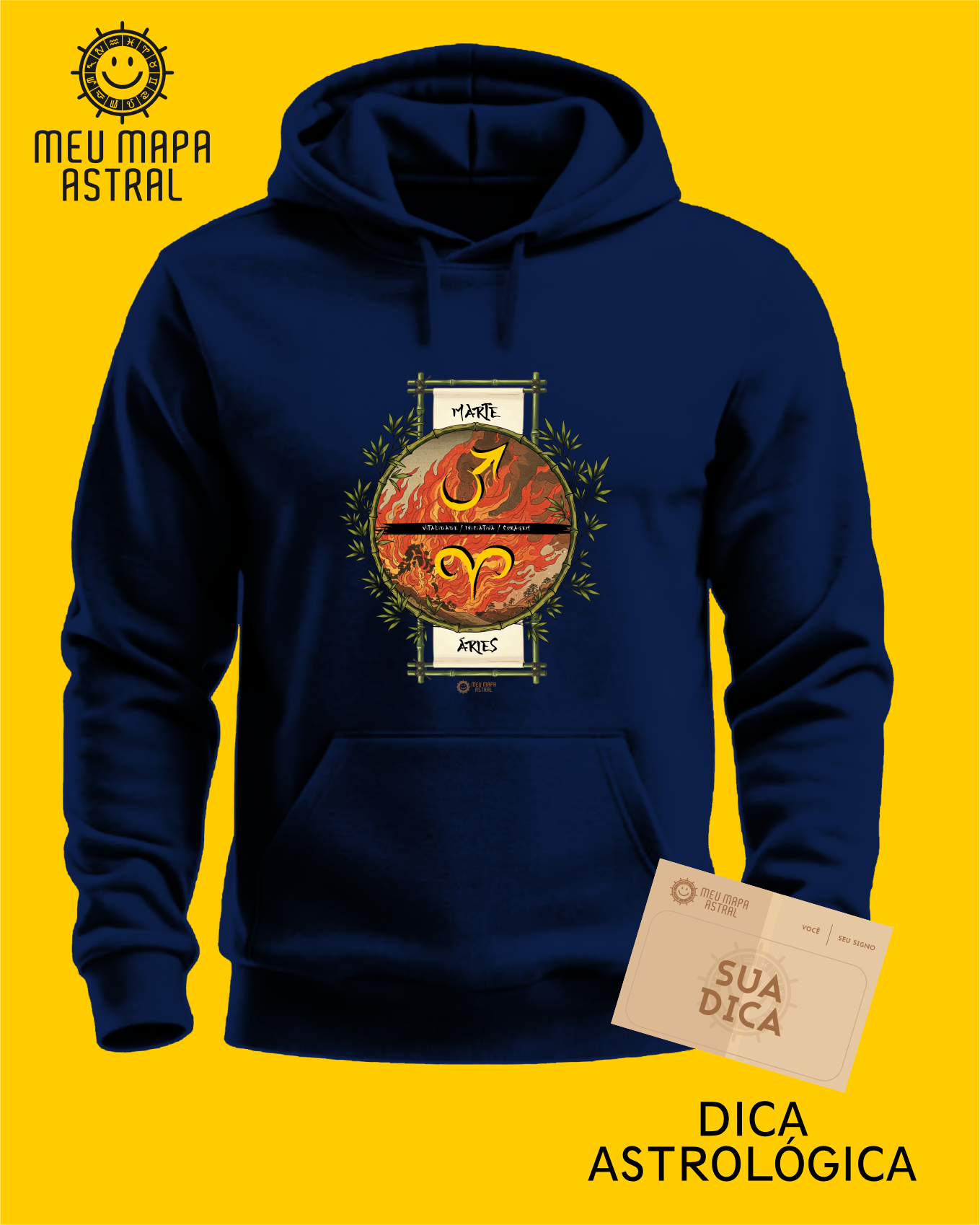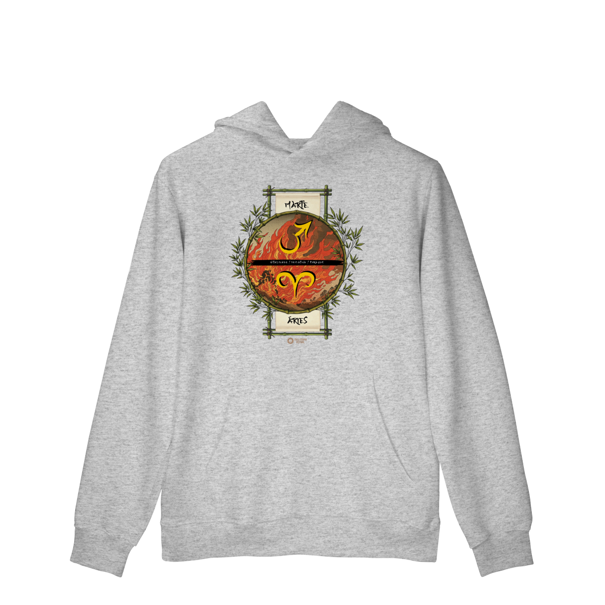 Moletom Ilustrado Áries/Marte — para quem quer esquentar corpo e alma com estilo! Em diversas cores, ele traz a energia explosiva de Áries, o poder do seu astro regente Marte, além de suas principais características, numa estampa astrológica inspirada no mestre do ukiyo-e, Katsushika Hokusai.